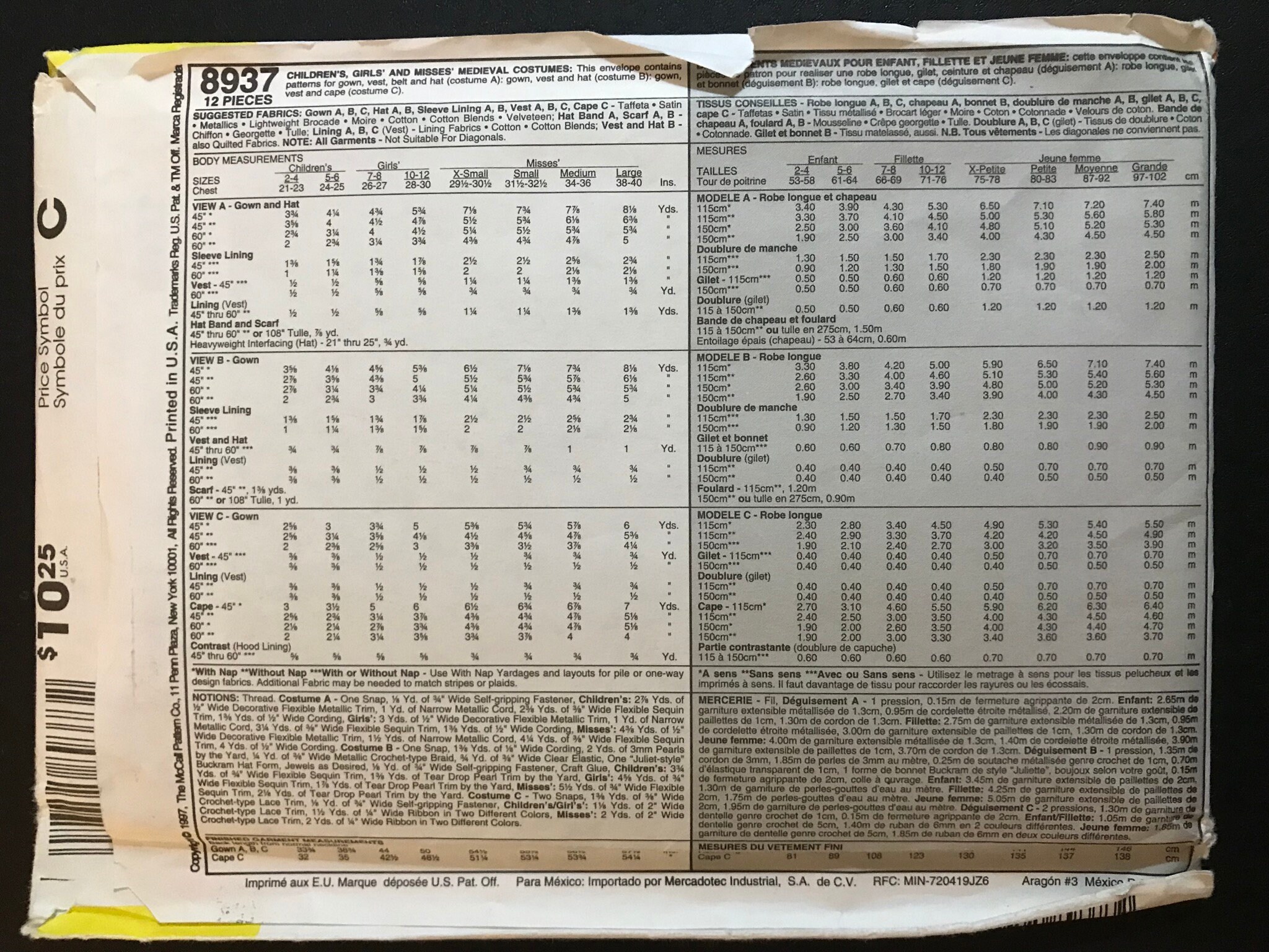 Mccalls P237 8937 6775 Pattern Womens Girls Medieval Costume Etsy De