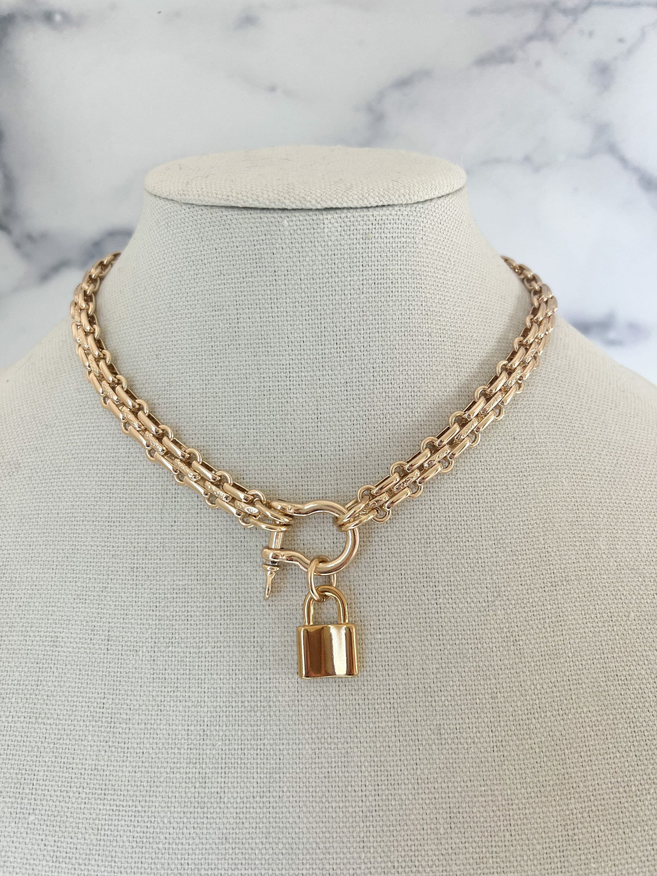 Gold Vorhangeschloss Halskette Doppelkette Gold Schloss Etsy De